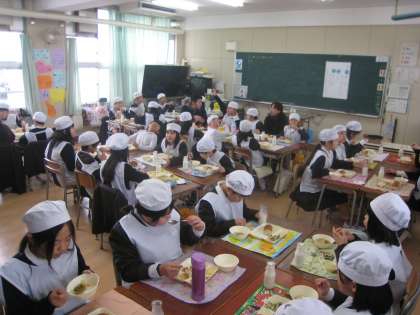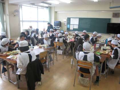今日の献立は、ホタテ貝のグラタン・スープ・和なし・レーズンパン・牛乳です。外は寒かったですが、温かいグラタンとスープで体が温まりました。
