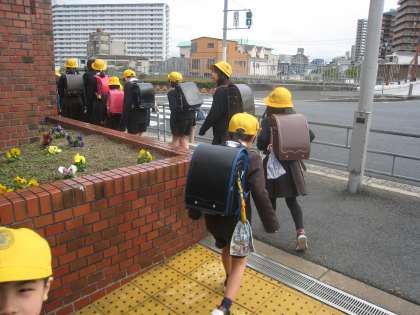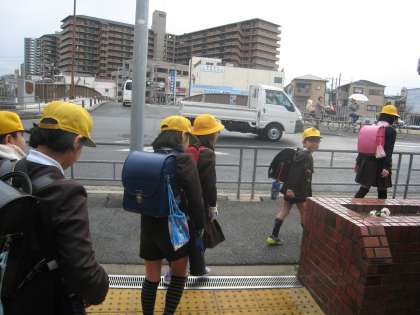 今日の下校は集団下校でした。朝の分団会議で話し合ったことを大切にしながら担当の先生と一緒に下校しました。