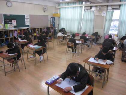 1月10日から12日まで大阪市立小学校で「大阪市小学校学力経年調査」が実施されます。3年生以上の児童は、国語・算数・社会・理科のテストと児童質問紙の回答をします。小学校ではなれない問題用紙と解答用紙が別々のテストですが、子どもたちは一生懸命に考え解答していました。