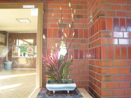 3学期が始まり、今月も地域の方に生け花を飾っていただきました。玄関、職員室前、校長室と華やいだ雰囲気になりました。