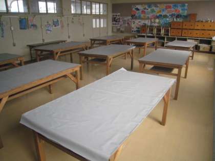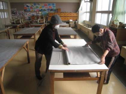 毎週水曜日のお昼に地域の「掃除ボランティア」の皆さんが、学校のお掃除のお手伝いをしてくださっています。今回は、4年生5年生6年生が学年休業になりましたので、掃除が行き届かないところをお掃除してくださいました。また、図工室の机のシートの張替えもしてくださいました。図工室での学習がしやすくなりました。