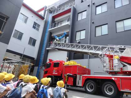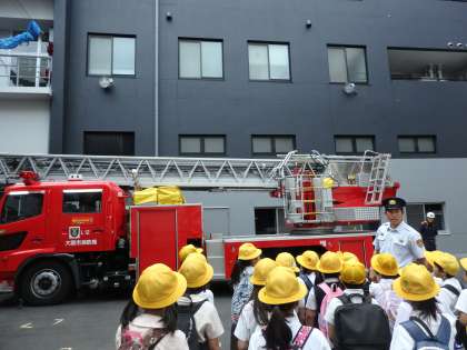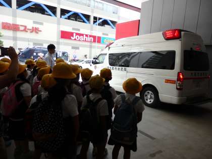 6月13日(水)4年生が城東消防署を見学し、消防署の役割や消防車・救急車について署員の方から説明をしていただきました。署内には消防車や救急車が数台ずつありましたが、ちょうど見学中に、救急車や消防車が緊急出動する時と重なり、子どもたちはその緊迫した雰囲気に圧倒されていました。