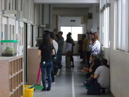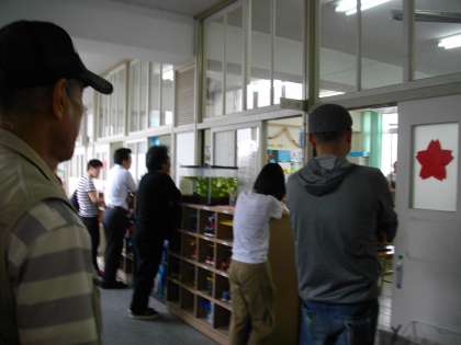 写真は廊下から参観をしている様子ですが、教室内にも大勢おられます。