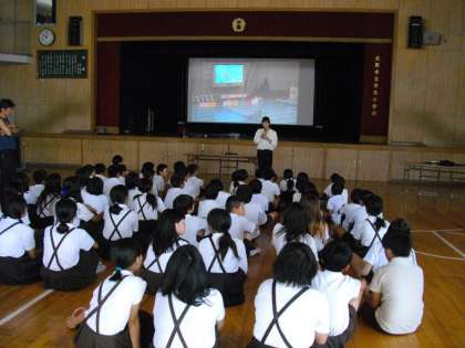 7月10日(火)シンクロナイズド・スイミングでオリンピック北京大会(2008年)等に出場され、輝かしい戦績を残された橘雅子さんをお招きし、5・6年生がご講演とプールでの実技指導を受けました。