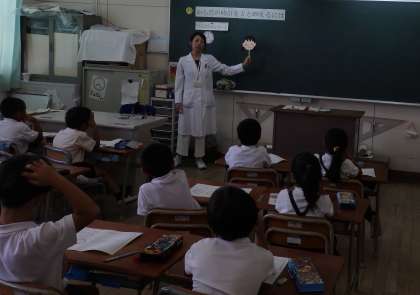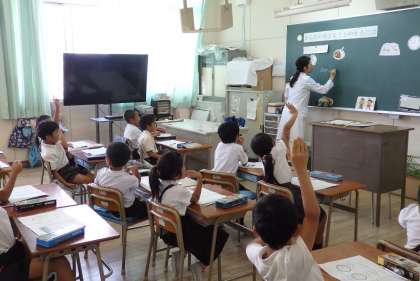ペープサートを使った「ある児童の一日」のお話を聞いて、どうしたらいいか考え、たくさん意見が出ていました。