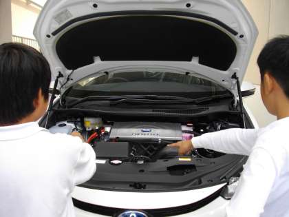 また、水素を燃料にして走る最新の自動車「Mirai」を校内に運んできてくれて、子どもたちは興味深々でした。