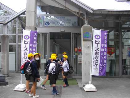 11月2日(金)、6年生は校外学習として大阪城敷地内にある「大阪国際平和センター・ピースおおさか」を見学しました。