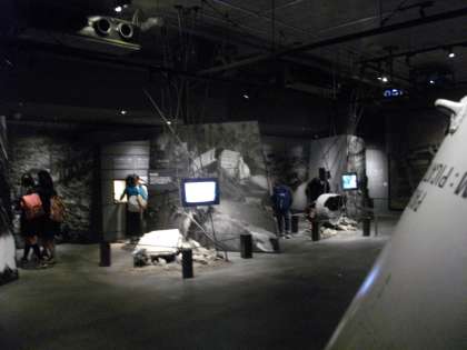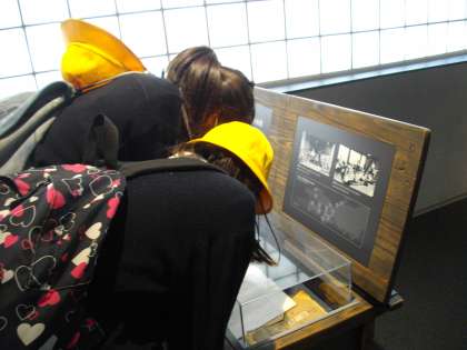 展示室では、数多くの遺品等が展示されていて、子どもたちが展示品を食い入るように見つめていました。残念ながら、展示品については撮影を禁止されていましたので、個々の展示品を掲載できませんが、子どもたちが真剣に見つめている様子だけを掲載しました。