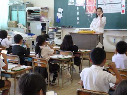 大阪市教育委員会の歯科衛生士お二人と、学校歯科医の上田先生に実施していただきました。
