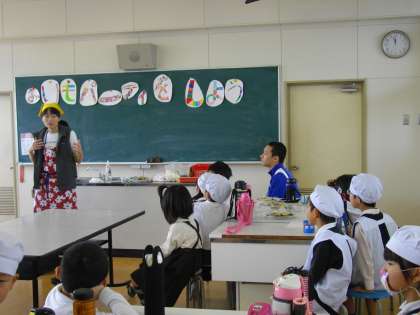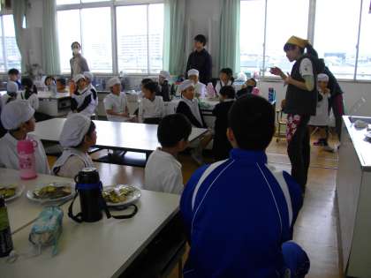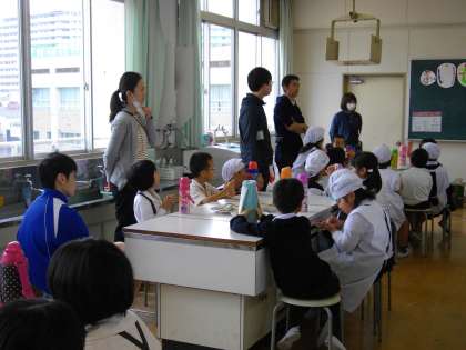 放出中学校から職場体験に来た二人の男子中学生(青い体操服着用)も参加してくれました。久しぶりに小学校に戻って、1・2年生の頃を思い出したのではないでしょうか。
