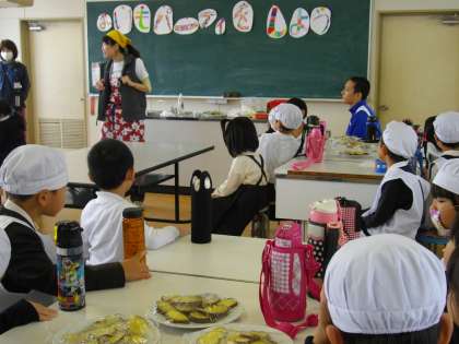 よほどおいしかったのか、みんなでわいわい、がやがや、楽しそうにおいしくいただきました。校長先生、教頭先生も少しいただきました。とてもおいしかったよ。