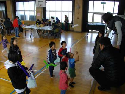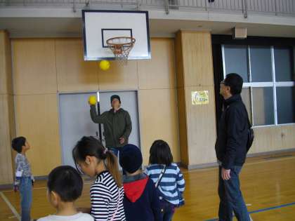 さらに、落ちてくるちり紙を、はしでつかむ「ひらひらおとし」、フリースローゲームです。