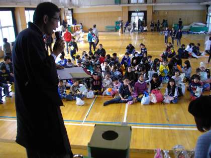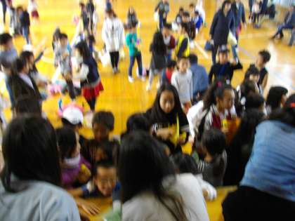 地域やPTAの方、教頭先生にもくじを引いてもらいました。みんなわくわくドキドキです。くじを引くたびに、子どもたちから大歓声とため息が聞こえ、1等賞のくじを引くことを頼まれていた校長先生もビクビクです。なぜかと言えば、毎年、私が、子どもの持っている番号を引かなければ、みんなにたいへんな恨みをかうからです。