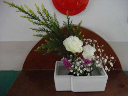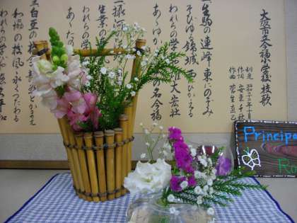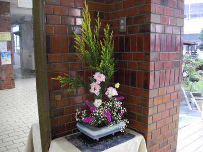 本校の玄関を入って左側、ローカ、校長室に活けられたお花です。