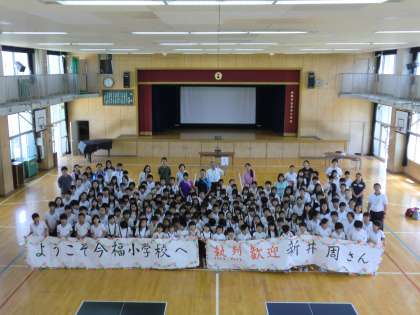 平成25年5月25日(土)今福小学校にトップアスリート、アテネオリンピック卓球選手の新井周(あらい しゅう)さんが来校しました。