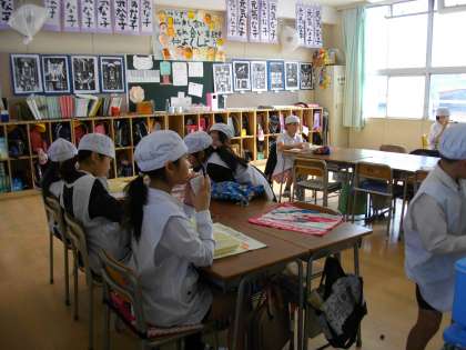 本校は単学級ですのでクラス替えがなく、ほとんどの児童は6年間同じメンバーで過ごすことになります。そこで、2つの学年が交流し、給食を食べることによって、お互いに仲良くなりましょうとした計画が「交流給食」です。