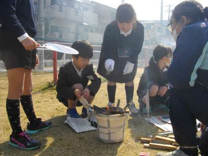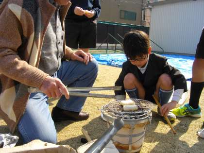 平成31年2月22日、地域ボランティアさんのご指導で、3年生が七輪を使って炭火でおもちを焼く体験をしました。炭火で焼いたおもちをみんなで一緒に食べて、とてもおいしいと喜んでいました。