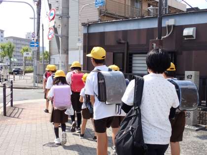 8月28日(木)朝、集団登校を実施している班ごとに集まって、登校時の安全について確認をしました。5時間目終了後には班ごとにまとまって帰る訓練を行いました。安全に登下校できるように引き続き見守りもよろしくお願いいたします。