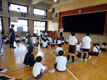 9月1日(月)児童朝会を行いました。9月1日は「防災の日」にちなんだ話題で話をしました。防災という言葉から連想することは?と問うと、「洪水」「高潮」「地震」「津波」「土砂崩れ」など発表してくれました。昭和9年9月21日の室戸台風で今福小学校でも33人の児童が命を失ったことも踏まえ、また最近の高温による熱中症も災害と言えることも付け加えて、命を守る行動を呼びかけました。
