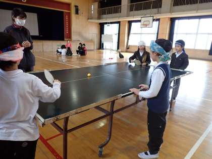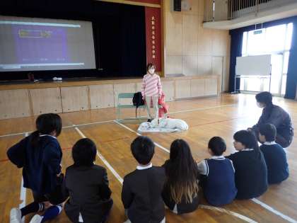 11月18日(火)、視覚に障がいのある方と盲導犬を招いて3年生が体験学習を行いました。まず、生活の様子や盲導犬についてのお話を聞きました。そして、視覚支援用の文房具や絵本を見せてもらいました。それから、グループごとにサウンドテーブルテニスをしました。目隠しをしてやると音だけが頼りなので難しそうでした。でも、子どもたちはとても楽しそうでした。ハーネスを外した盲導犬とのふれあいの時間もありました。
