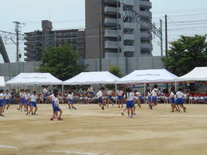 5月26日(日)快晴の下、「令和」になって初めての運動会を行いました。当日は、暑さ対策を学校だけでなく、ご家庭にも協力していただきました。保護者や地域の方々が大勢来られ、各学年の演技や競技にたくさんの声援や拍手をいただきました。