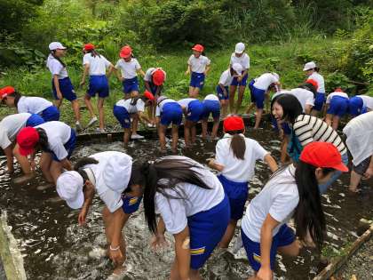 元気に逃げ回る魚をみんな捕まえようと必死です。