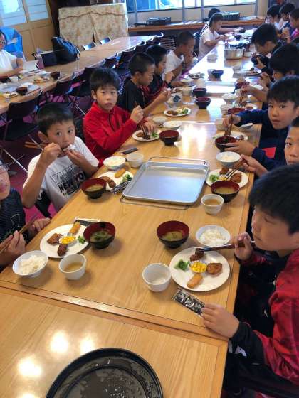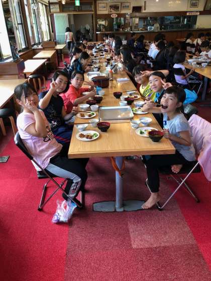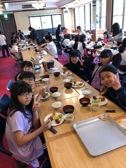 みんな美味しい和食を食べて、登山に向けてエネルギー充電中。