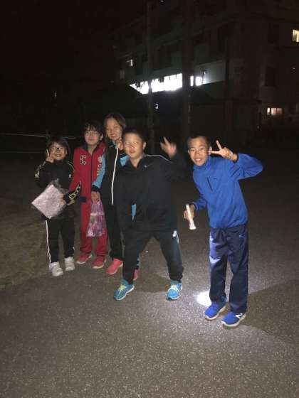 夜の山道を活動班の友達と励まし合いながら、怖さを乗り越えて進んでいきます。