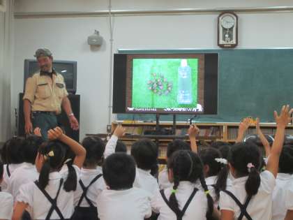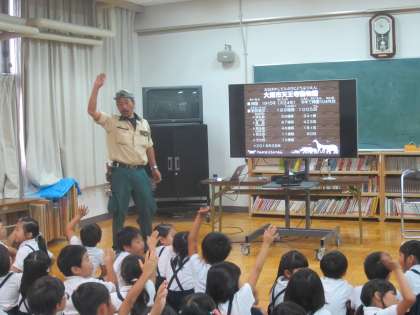 本日は、1年生の出前授業でした。「天王寺動物園」の獣医さんに来ていただき、動物のうんちやえさについて、楽しくお話をしていただきました。