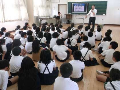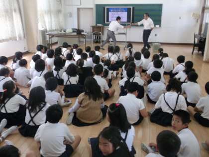 本日は、4年生のインターネット安全教室でした。NTTドコモの方と城東警察署の方を講師に迎えました。携帯電話(スマートフォン)の便利さな点と危険な点をわかりやすく説明していただきました。
