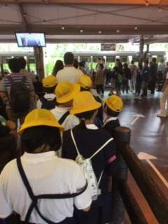 色々な動物を見て楽しんでいます。ケニア号に乗るために並んでいる子供たちもいます。
