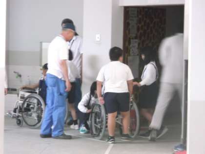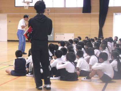 今日は、リハビリテーションセンターの方を講師として迎えました。車椅子に乗って自分で動かしたり、友達を乗せたりしました。段差やスロープでの安全な動かし方について学習しました。バリアフリーのよさについても学習しました。