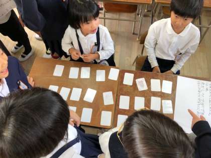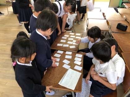班の子どもたちで行う神経衰弱です。班で何セット作れるかを競います。