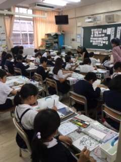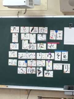 葉書サイズにひらがなを書いたり、動物の顔を描いたりしています。