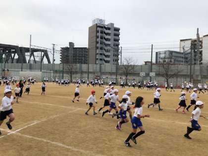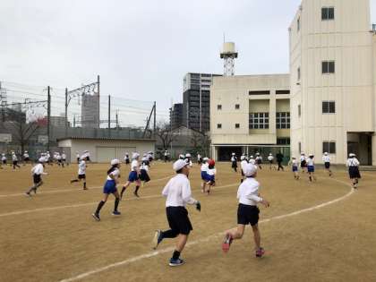 子ども達は、音楽に合わせて自分のペースをしっかり守って走っています。