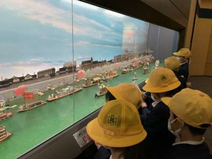 本日、3年生はくらしの今昔館で昔の道具や、くらしの様子を見学しました。