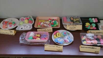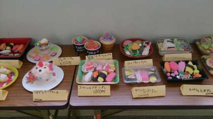 紙粘土に色をつけ、お弁当やお寿司、デザート等を作りました。