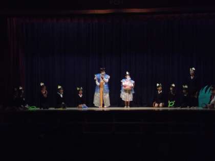 2年生(9:30〜9:50)「ザリガニたんけんたい」。教室で飼われていたザリガニ達がお腹をすかせて逃げ出しました。途中で金魚やオタマジャクシに会い、故郷をめざします。そこに思わぬ敵が……。無事にザリガニ達は旅を続けられるでしょうか。