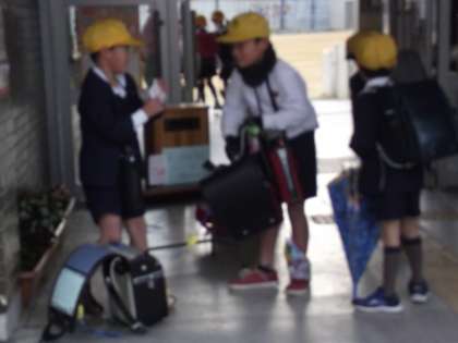 募金する男子や、ランドセルの中から大事な募金を出している子ども達です。