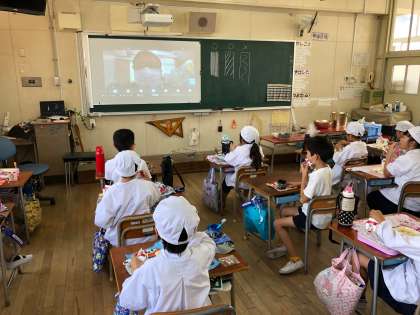 黒板に校長先生の顔が映った時は、子ども達から歓声が起こりました。