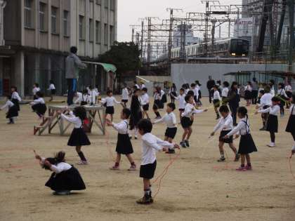 12月12日は、低学年(1〜3年生)の「なわとび集会」です。後ろ跳びなど、少しテクニックのいる跳び方にもチャレンジしました。