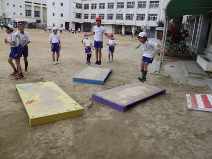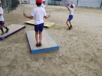 なわとび用のジャンプ台が大活躍です。そのため修理が必要になると管理作業員さんが直してくれたりしています。