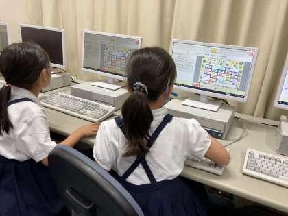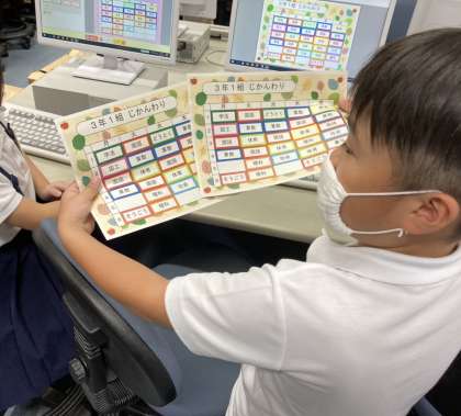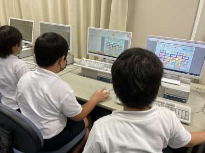 3年1組では、本日、パソコン室で学校のパソコンに搭載されているキューブきっずというソフトを使って、2学期の時間割りを作成しました。