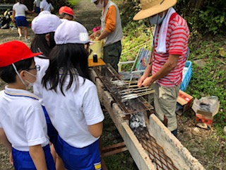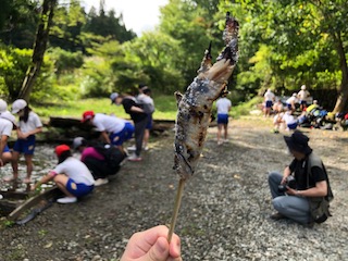 つかまえたアマゴは、炭火で焼いてもらいます。