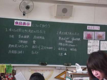 他校の栄養教諭の先生に来ていただいて、栄養指導を行っています(市内すべての小学校で全学年実施)。今日は6年生で「食品表示について知ろう」をテーマに学習しました。品物を買う時、どんなことに気をつけているか。賞味期限と消費期限の違いは?おやつは1日何カロリーが妥当か。どうして給食では国産品の野菜や肉を使うのか。覚えたことはたくさんあります。