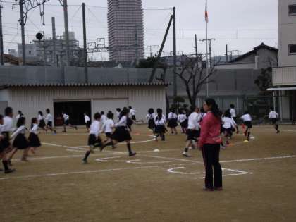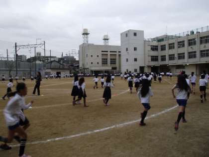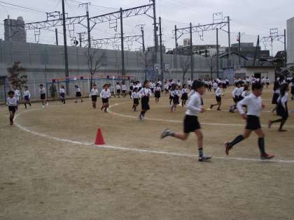 今日から「かけ足週間」です。今日は1・3・5年生(2・4・6・年生は教室で読書タイム)が始業前に運動場でかけ足しました。