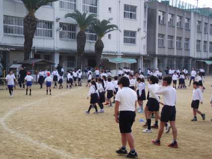 今日は、奇数学年の「かけ足集会」です。かけ足の準備と後片付けは、毎回運動委員のメンバーが行なっています。