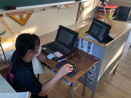 Teamsを使って、教室からそれぞれの家庭に配信しました。また、学校の別教室から参加する児童もいました。