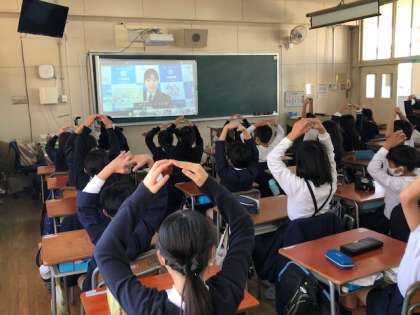 今日は、城東警察署と大阪府警本部の方に来ていただき、交通安全教室をしていただきました。