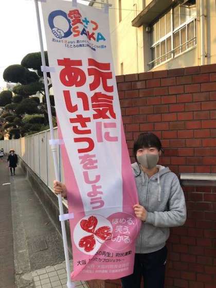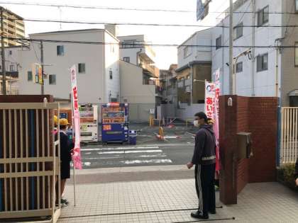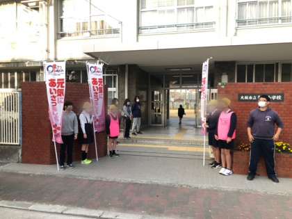 毎朝正門の前に運営委員会の児童が立ち、登校している児童にあいさつします。